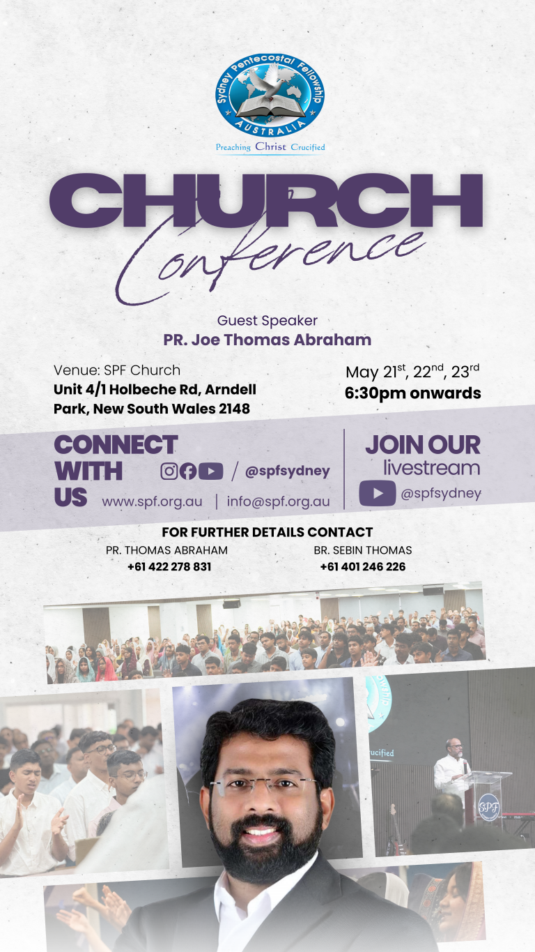 Join us for a powerful Conference hosted by Sydney Pentecostal Fellowship (SPF) Australia. This will be a time of anointed worship, Word-centered preaching, prayer, and a fresh move of the Holy Spirit.